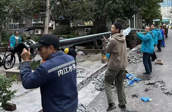 该小区管网设施陈旧老化,经常出现水管爆裂,已经影响居民正常生活。为切实解决问题,管网运行部积极贯彻“变被动抢修为主动维护”的服务宗旨,与管网规划部联合,多次组织人员到现场了解用户用水情况,查看供水管线走向和供水设施安装位置,“量身定制”出科学可行的供水管网改造方案,让改造工作实施过程中尽量降低对小区2000户居民的生活、出行和用水影响。