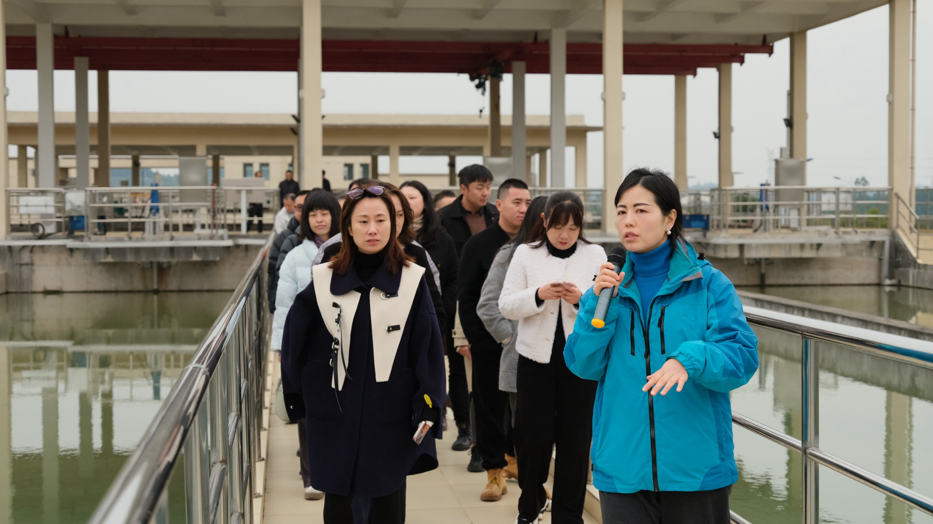 随后,一行人参观了厂区生产的各个点位,近距离观察了自来水生产工艺各个环节的水质变化,真切体会到自来水净化的奇妙过程。