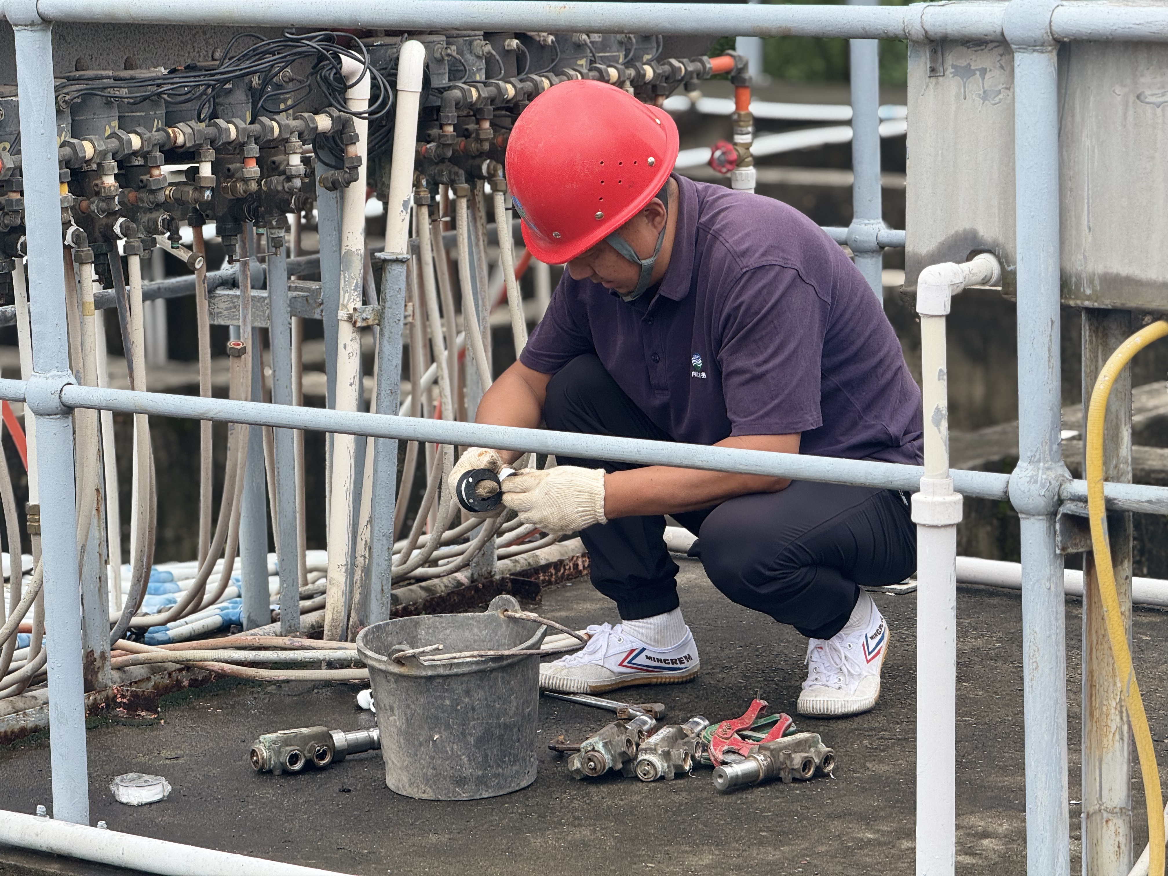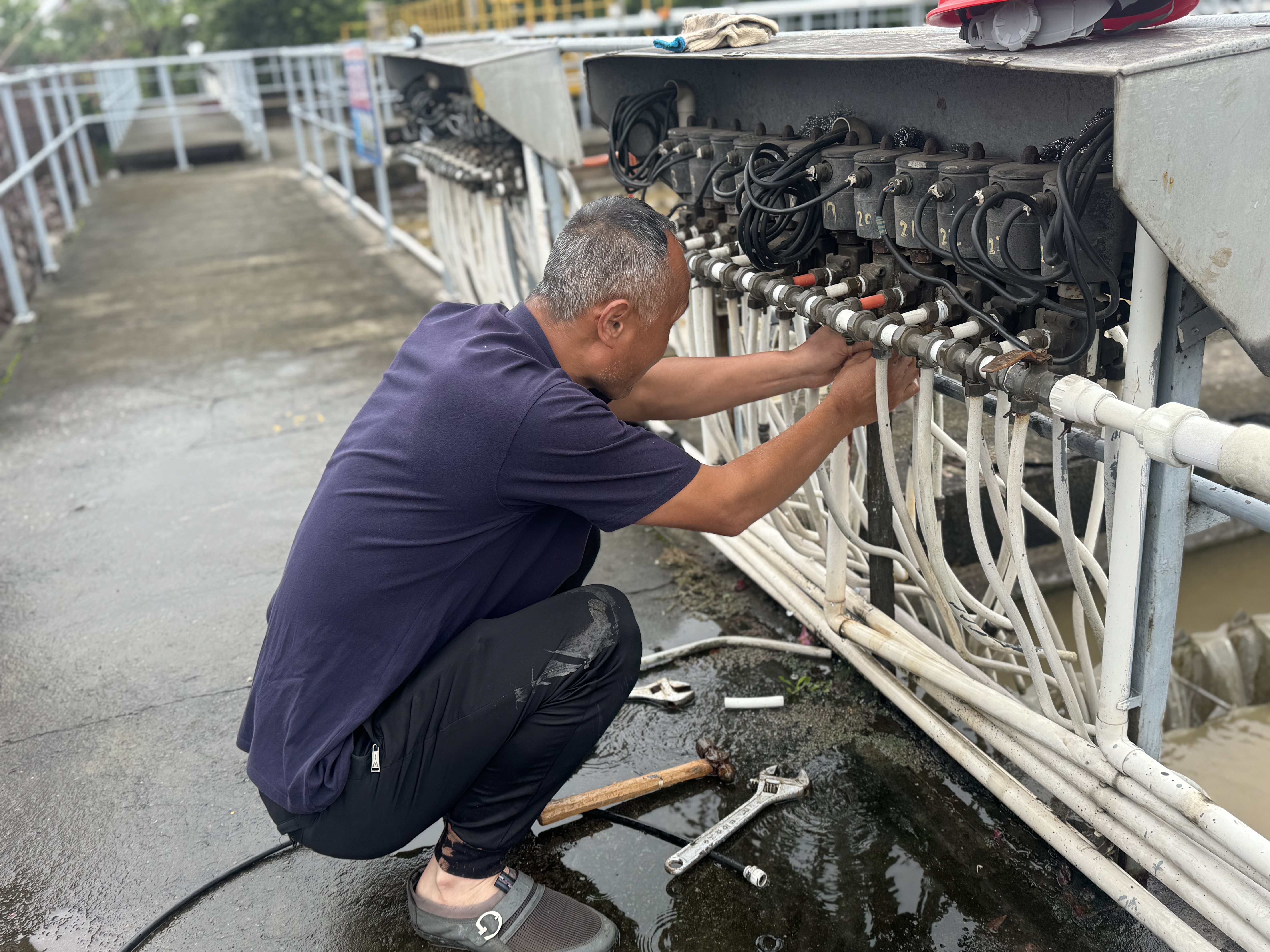 供水安全的责任重于泰山。7月8日清晨,刚刚完成三水厂二氧化氯投加设备维修的供水分公司维修组,闻令火速转战二水厂,投入到紧张的“战斗”中:迅速展开拆解、诊断、更换、调试工作。经验丰富的维修师傅们动作娴熟而精准,他们以专业的技术和顽强的作风,与时间赛跑,与故障较量,高效疏通了排泥系统的“堵点”,确保流进千家万户的每一滴自来水,都经得起最严格的检验。