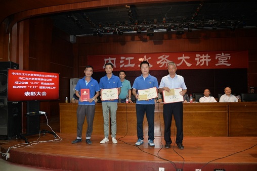 会上,大家观看了成功处置“6·28”高浊度洪水和“7·12”超警戒洪峰专题片。公司党委委员、副总经理林冬宣读了《关于表彰成功处置6·28高浊度洪水和“7·12”超警戒洪峰的决定》。公司领导班子成员分别为获得先进的集体和个人颁奖。四位模范标兵分享了他们在两次抢险救灾工作中的亲身经历和思想感悟。在他们的发言中,我们都能寻找到一个共同点,他们都以身为一名水务人关键时刻勇于担当而骄傲。