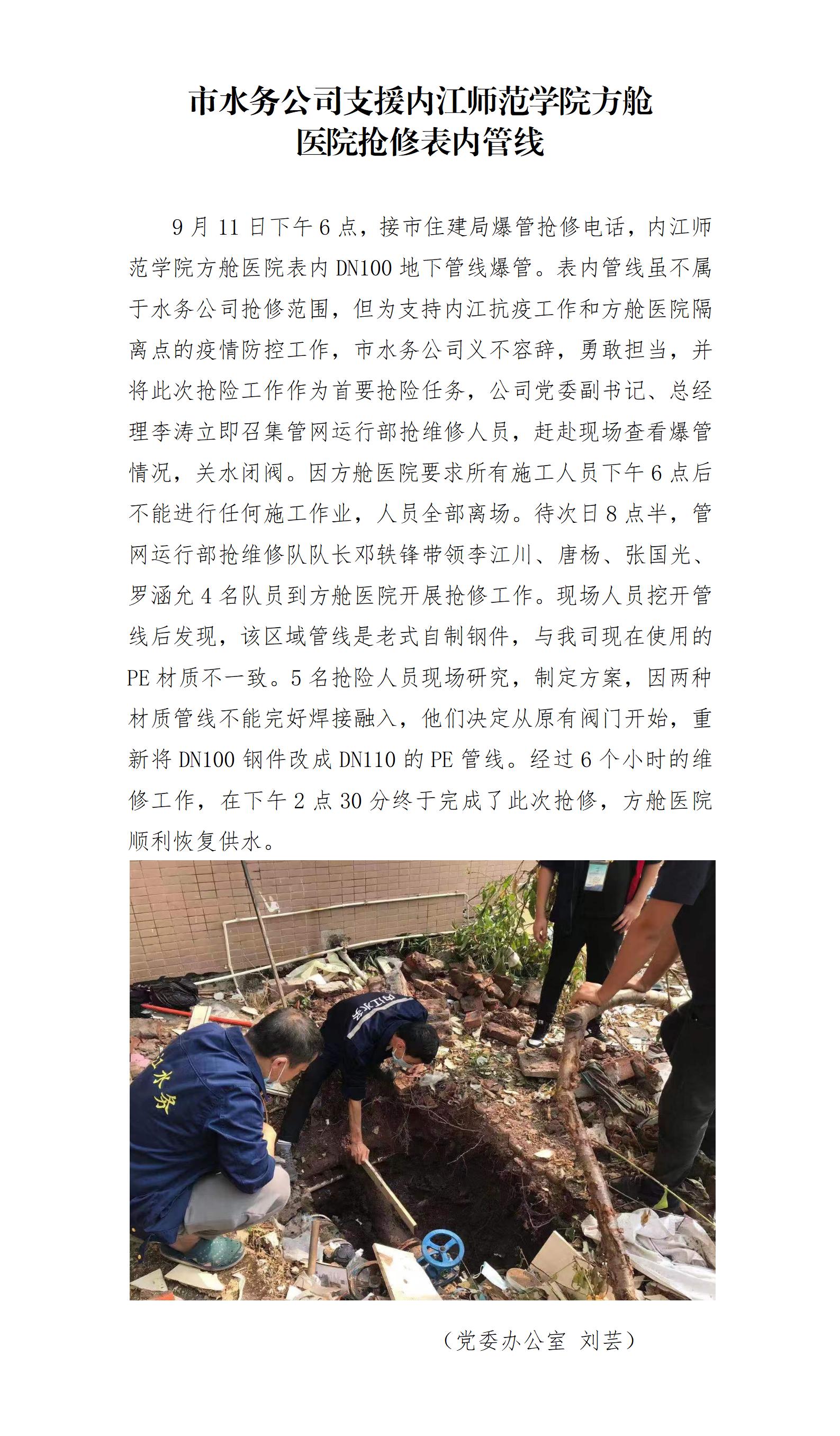 皇冠体育博彩 支援内江师范学院方舱 医院抢修表内管线