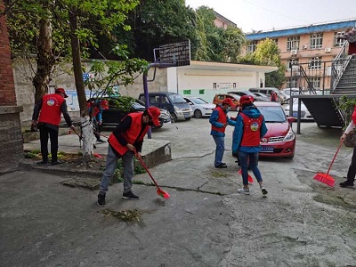 十余名党员及青年志愿者来到东兴区新江社区开展志愿服务活动。此次志愿服务活动的主要内容是对该区域二次供水设备的维护、保养及老年公寓的清洁和志愿服务。志愿者们身着红马甲、头戴小红帽、手拿扫帚或背担消毒水喷洒罐,对玉兰山庄老年公寓及二次供水设施设备的区域进行仔细清扫和消毒。
