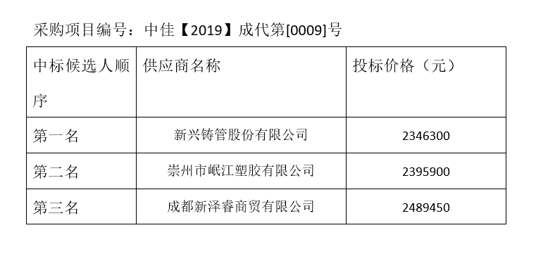皇冠体育博彩 球墨铸铁管管材及管件采购项目评标结果公示