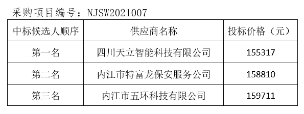 内江市污水处理有限责任公司监控系统升级改造项目评标结果公示