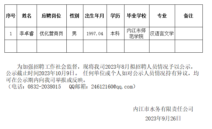 皇冠体育博彩 2023年9月拟招聘人员公示