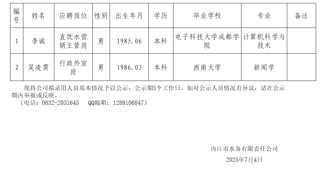 皇冠体育博彩 2025年7月拟招聘人员公示情况表