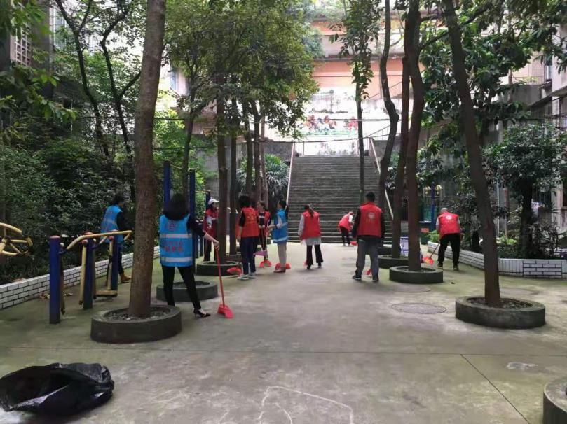 4月23日,皇冠体育博彩 第二党支部志愿者走进甘泉寺社区,协同社区工作者一起开展卫生大扫除志愿服务活动。