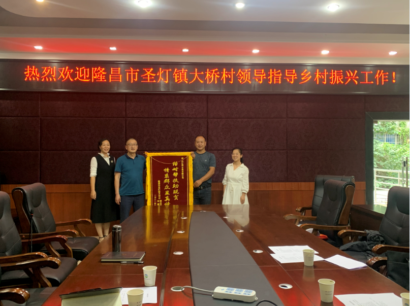 8月26日,隆昌市圣灯镇大桥村两委负责人一行来到皇冠体育博彩 ,送来“结对帮扶助脱贫 情系群众显真情”锦旗,感谢我司6年来对大桥村的帮扶,使全村的脱贫攻坚工作如期顺利完成。