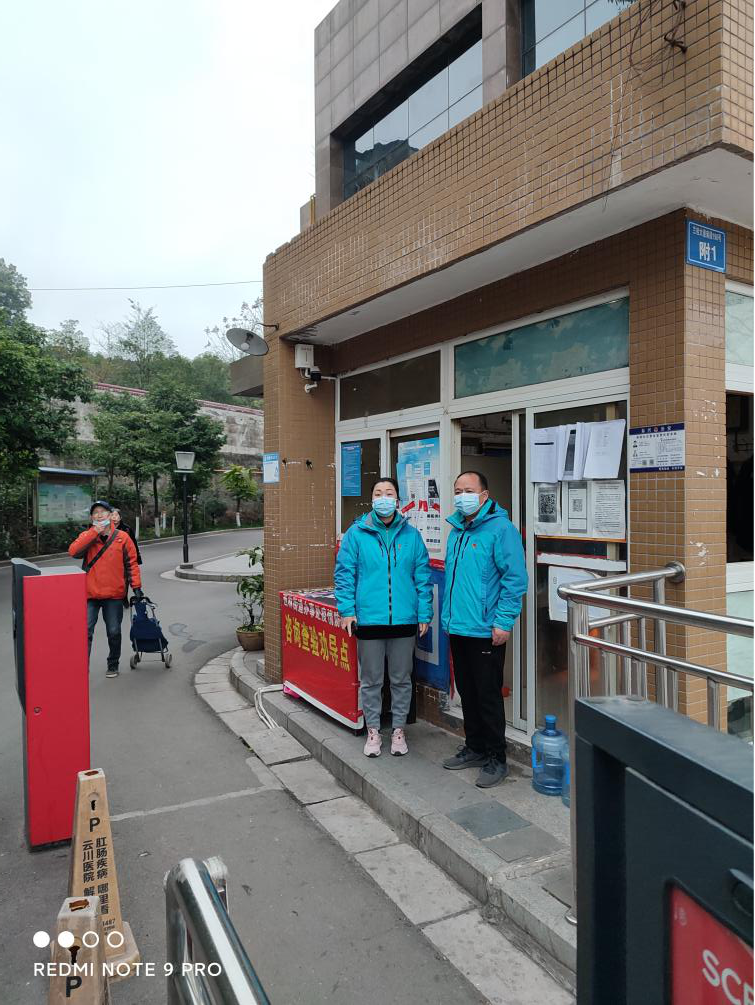 1月18日,皇冠体育博彩 第六党支部联系内江师院社区,组织20名党员和群众配合社区对东兴区兰桂大道小区开展“疫情防控 志愿有我”防疫值守。