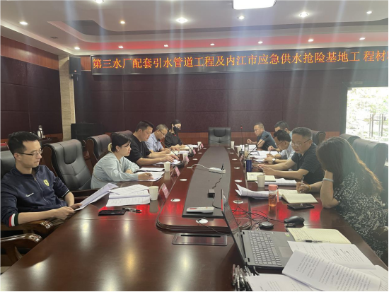 4月24日下午,公司常务副总经理唐贤彬在三楼一会议室主持召开会议,专题研究三水厂配套引水管道工程和应急抢险基地工程项目建设所需设备材料询价工作。市发改委、市财政局、市住建局、市国资委、内投集团和皇冠体育博彩等询价工作组相关人员参加会议。