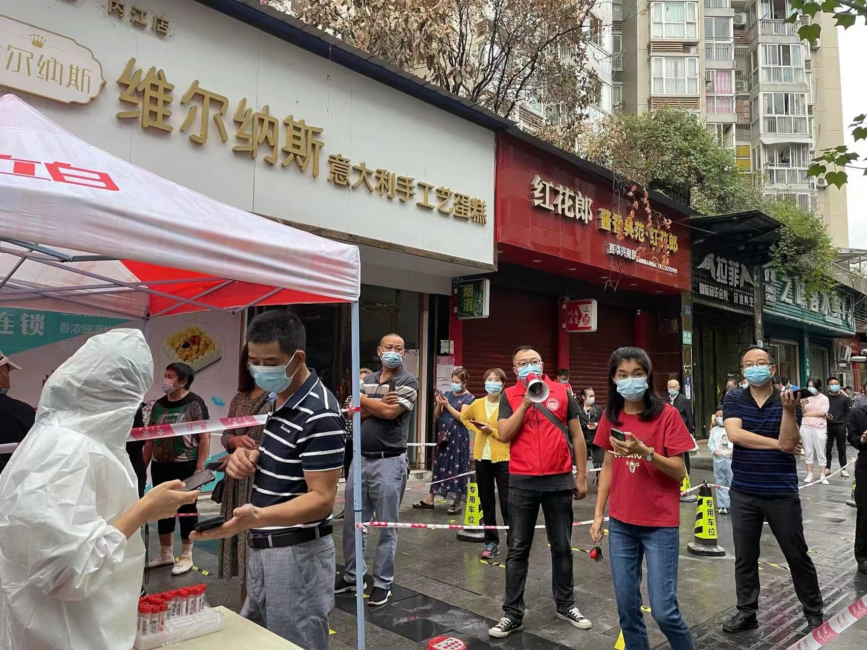 居住在市中区的两名党员袁弋涵和饶一与支部对口帮扶的甘泉寺社区对接后,在梅家山体育场核酸采集点参与志愿服务工作;居住在东兴区的两名党员倪勇、邓倩到就近社区(月儿湾社区、万达社区)“双报道”,听从社区的统一安排开展志愿服务。