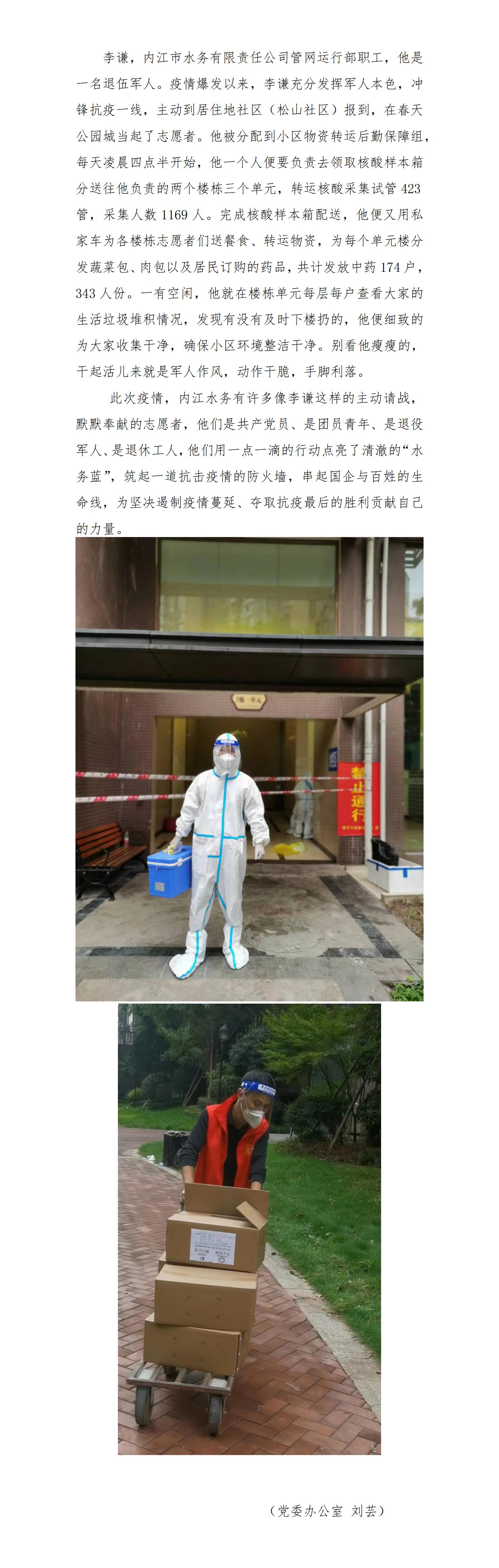 微光共聚 点亮水务蓝——抗疫志愿者李谦