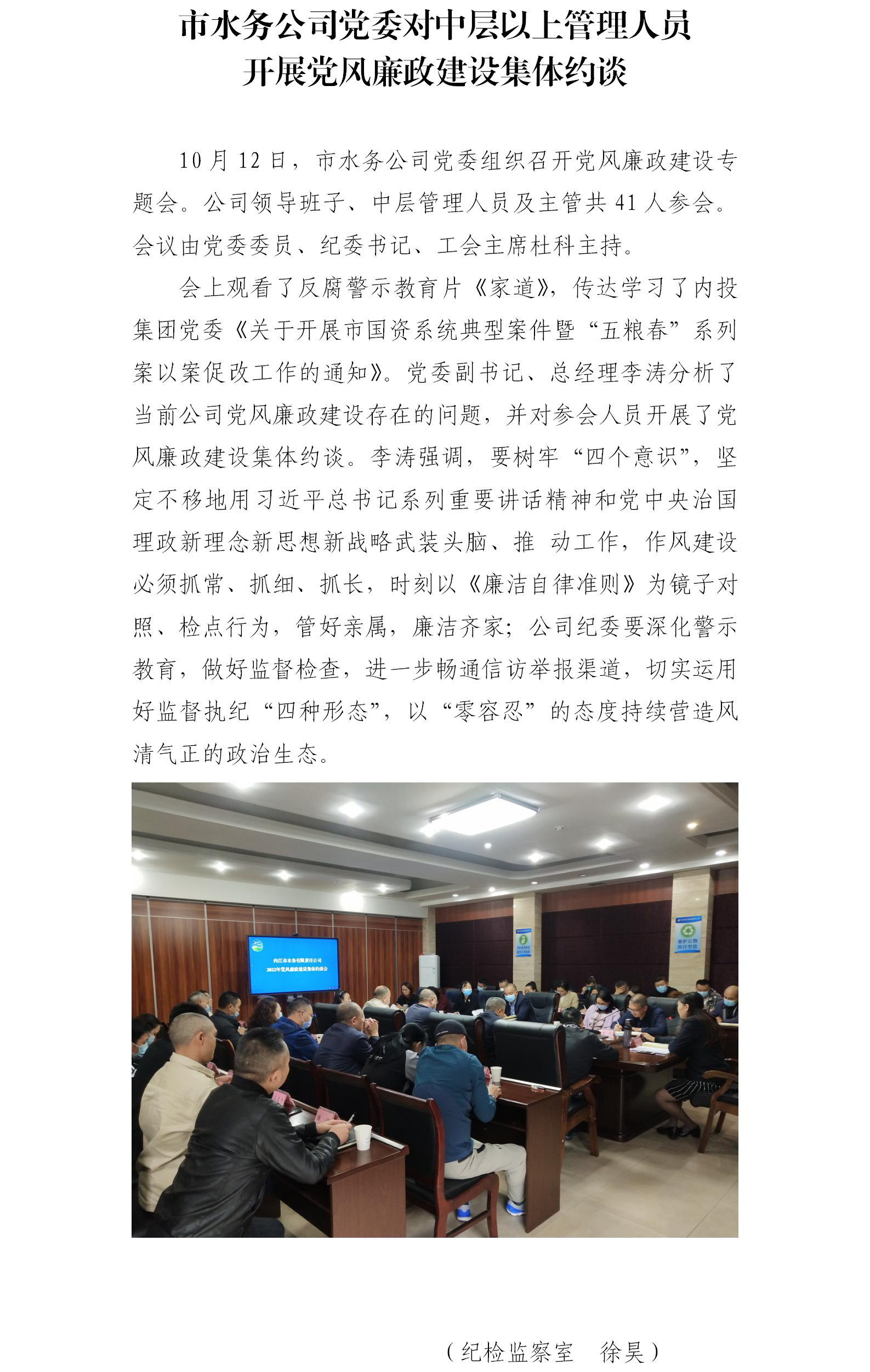 皇冠体育博彩 党委对中层以上管理人员开展党风廉政建设集体约谈