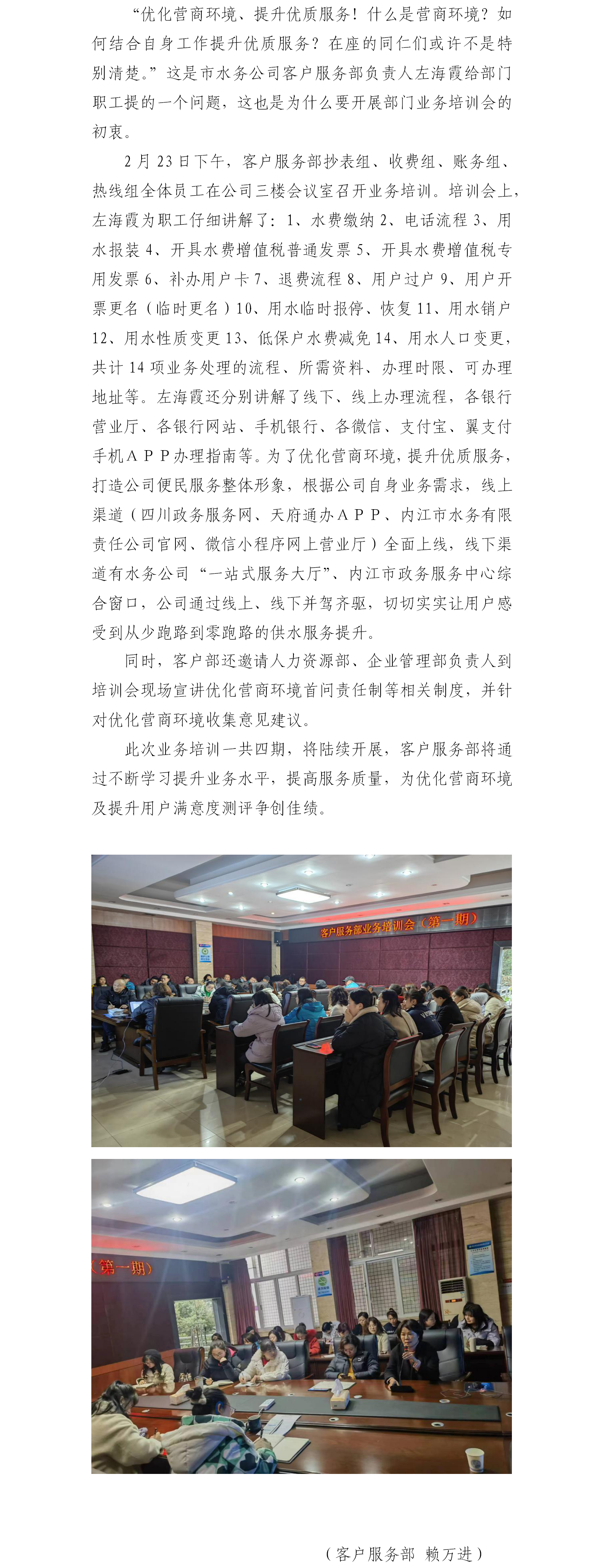 优化营商环境 提升优质服务——客户服务部积极做好员工业务培训