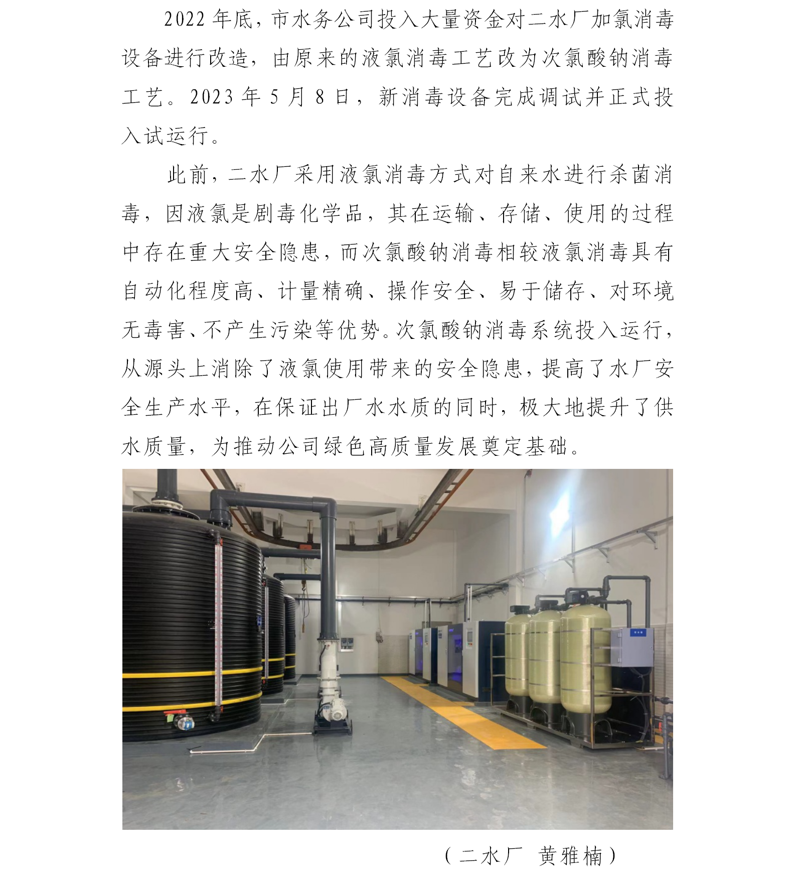 二水厂完成次氯酸钠消毒系统改造工程