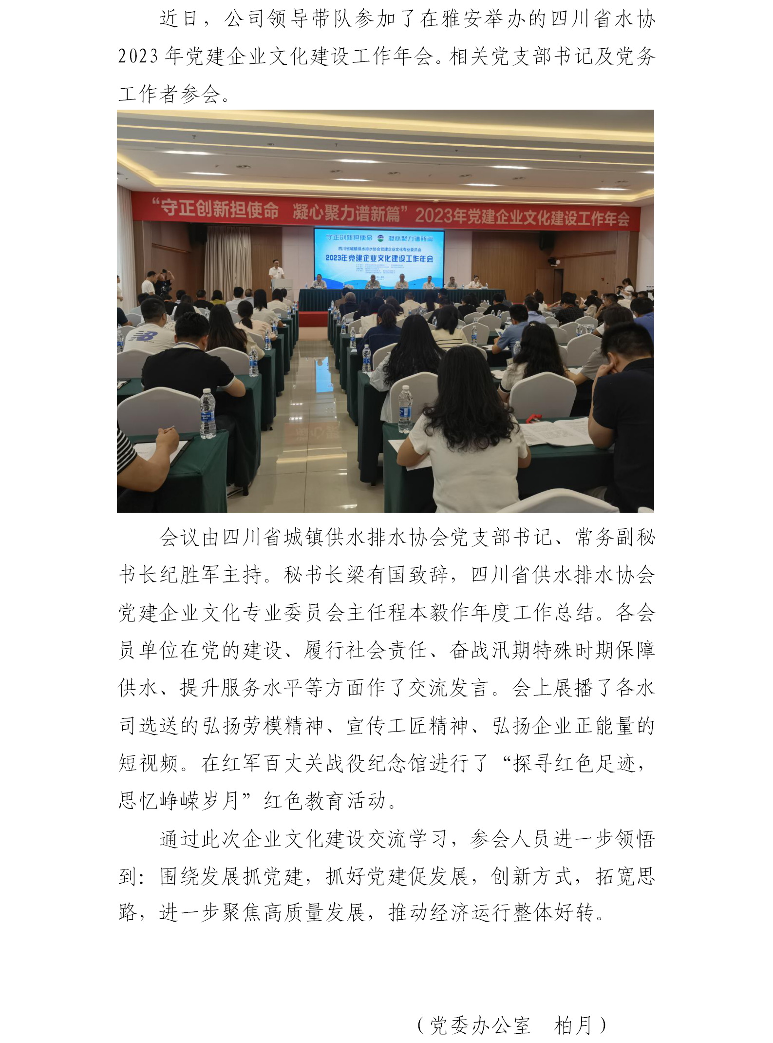 公司派代表参加四川省水协2023年党建皇冠体育博彩建设工作年会
