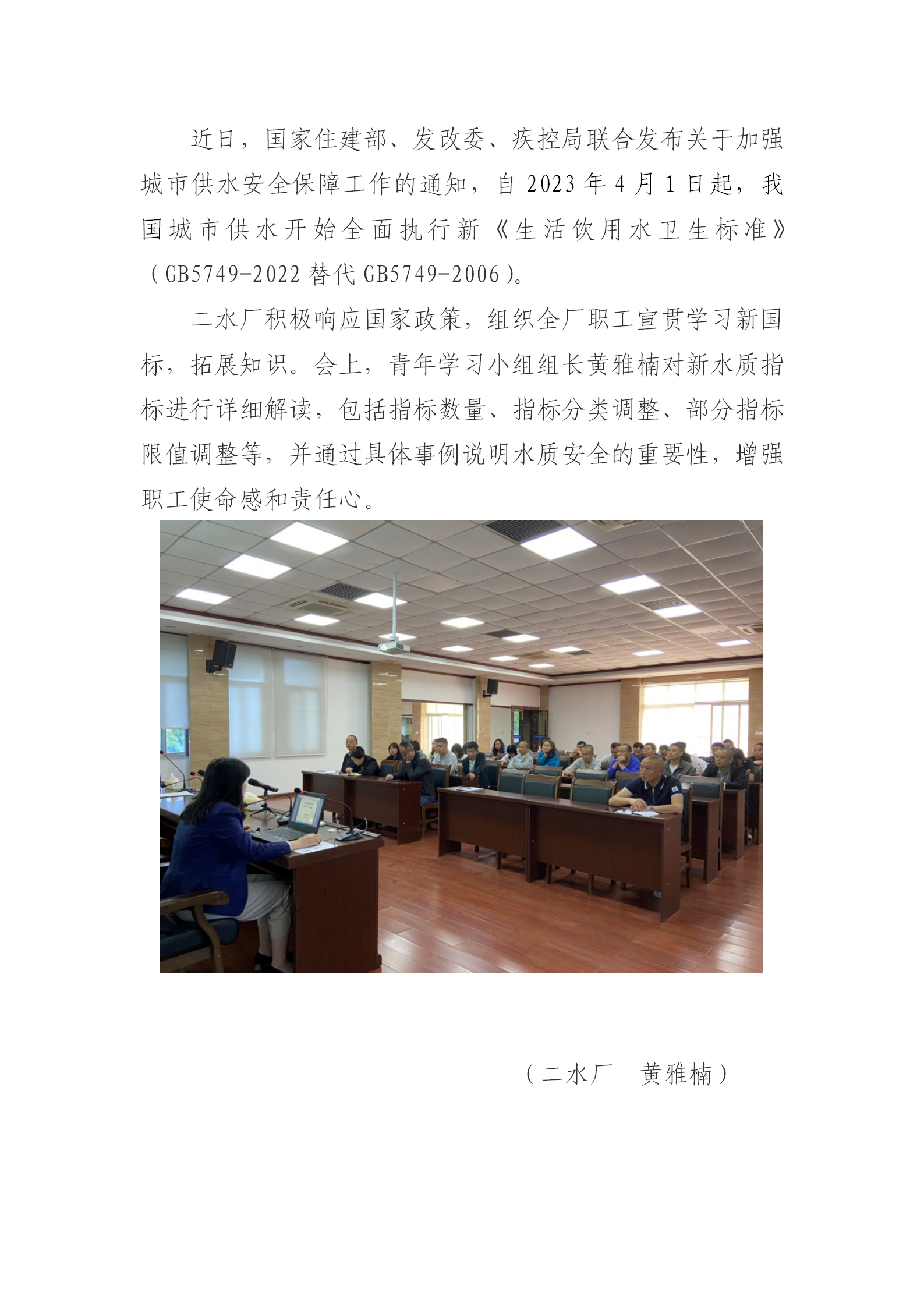 二水厂组织学习生活饮用水新国标