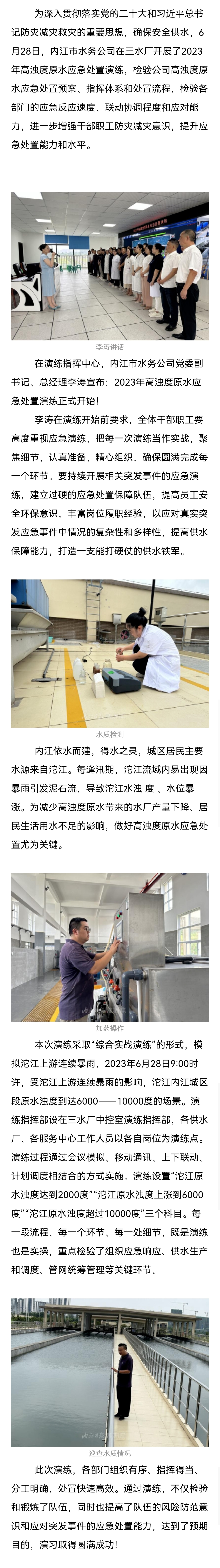 内江皇冠体育博彩 开展2023年高浊度原水应急处置演练