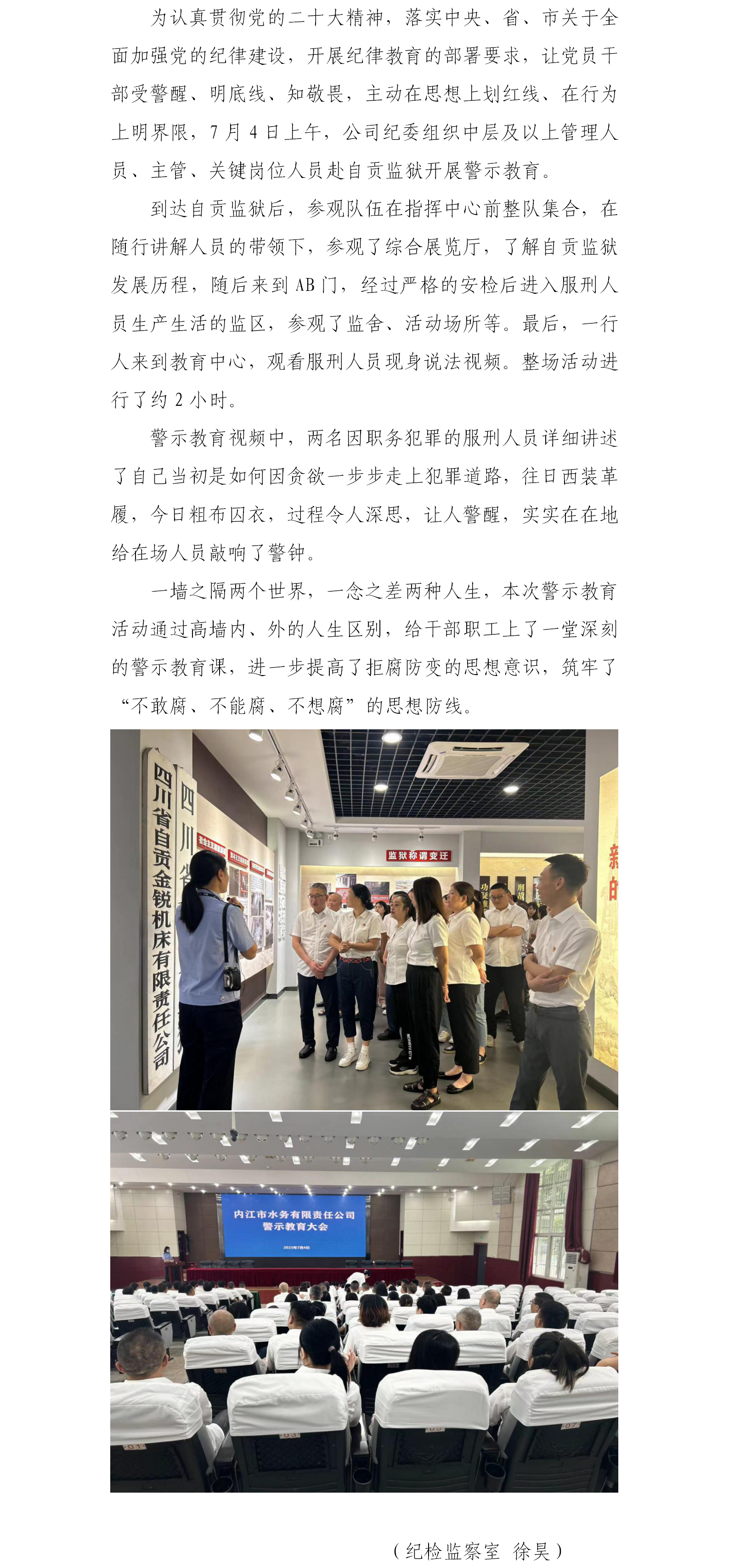 皇冠体育博彩干部职工赴自贡监狱开展警示教育