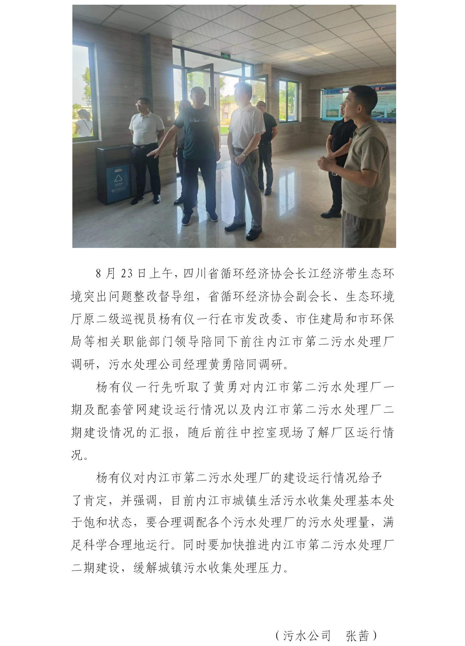 四川省循环经济协会长江经济带生态环境突出问题整改督导组调研内江市第二污水处理厂