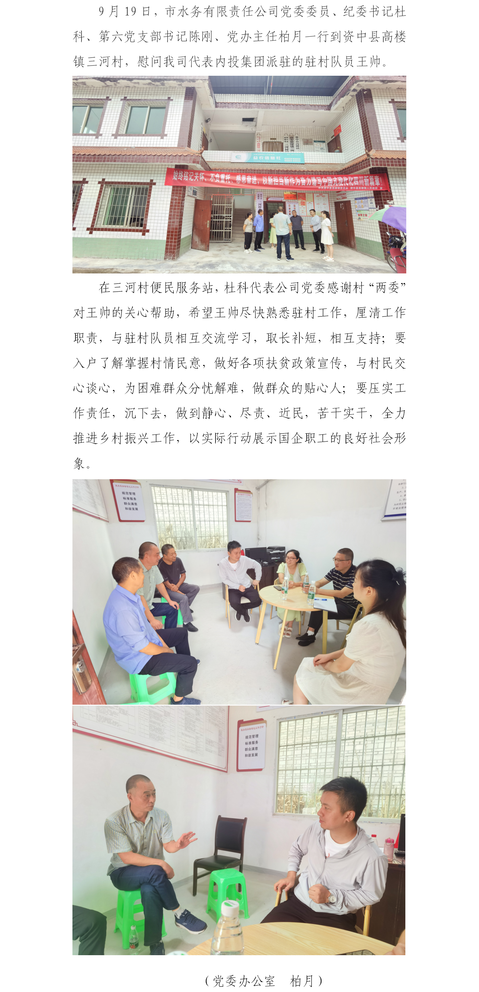 公司党委慰问三河村驻村工作队员