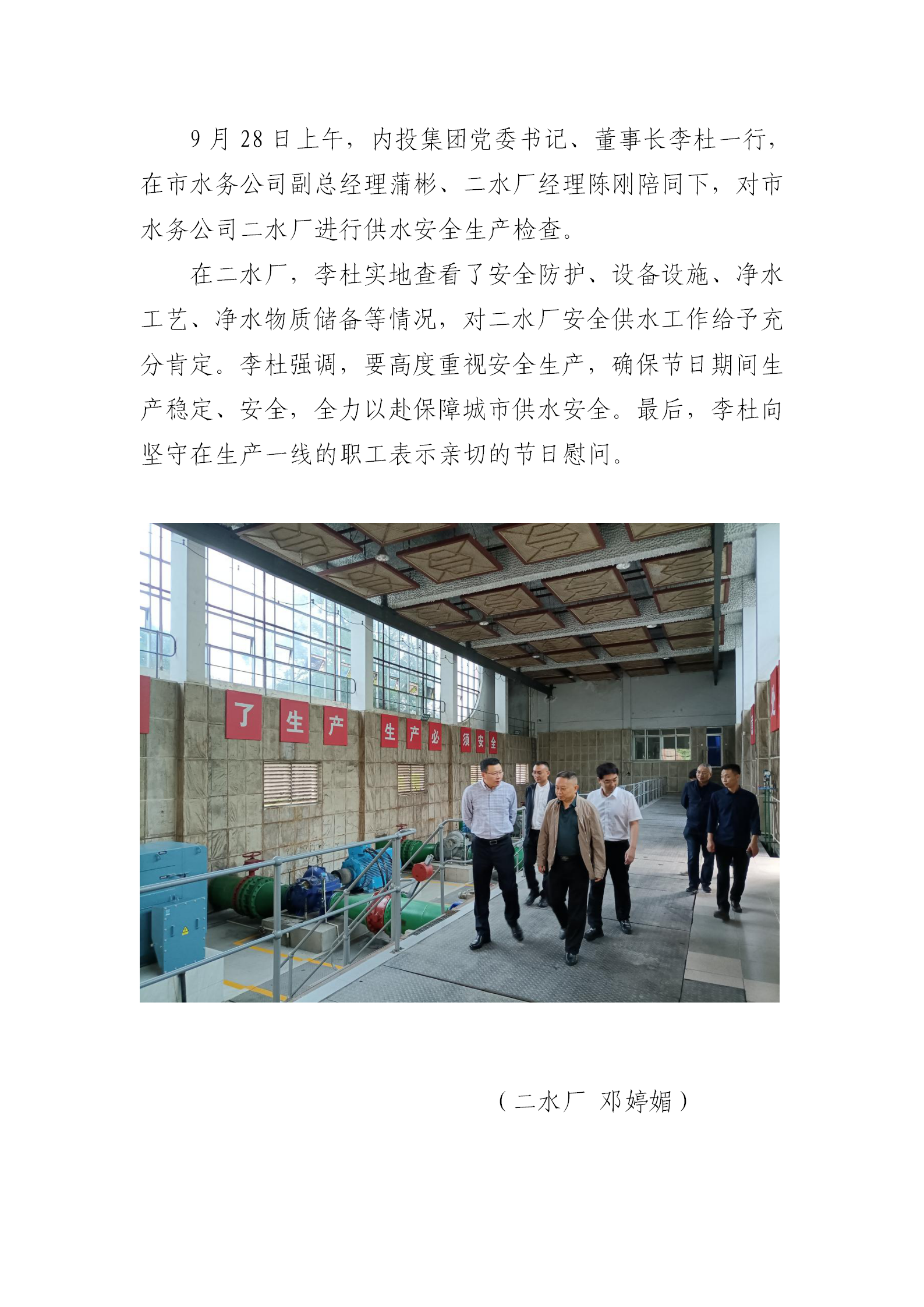 内投集团领导到二水厂检查安全工作