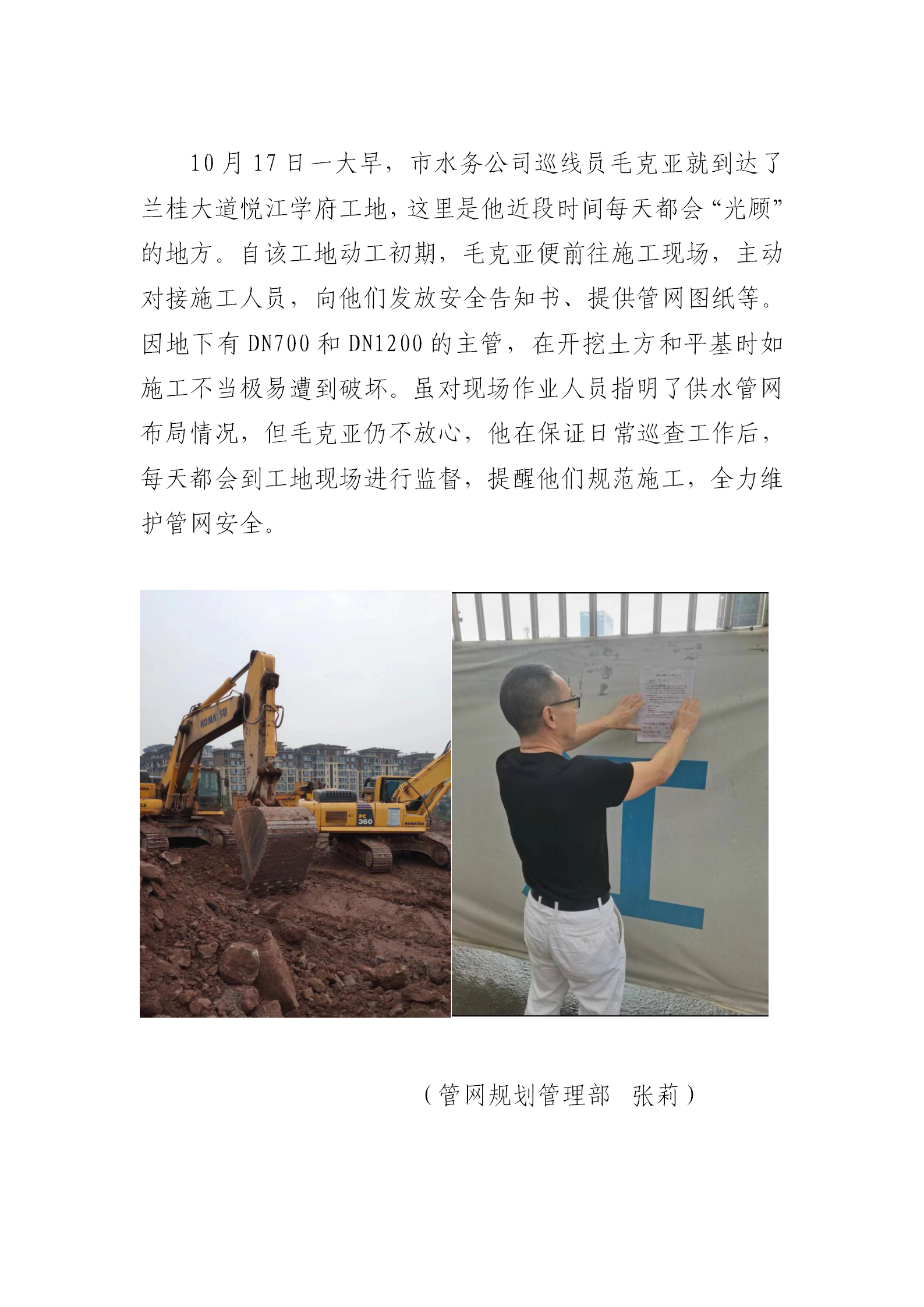 施工现场勤“光顾 管网安全我维护
