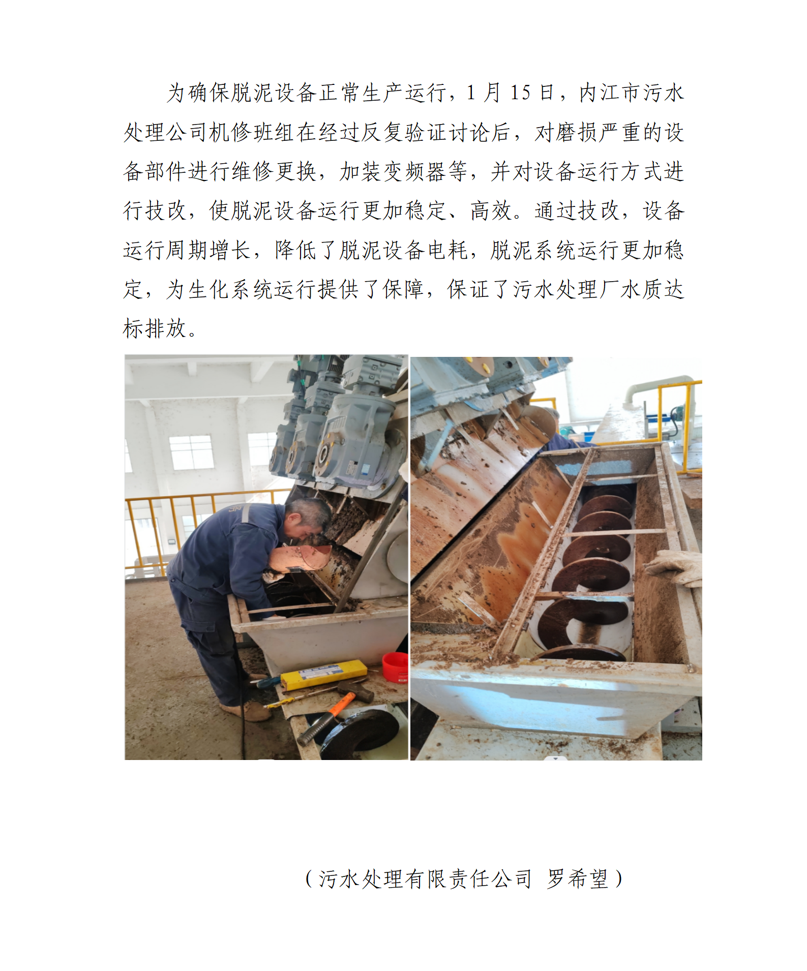 污水处理公司对脱泥设备进行技改 确保污水达标排放