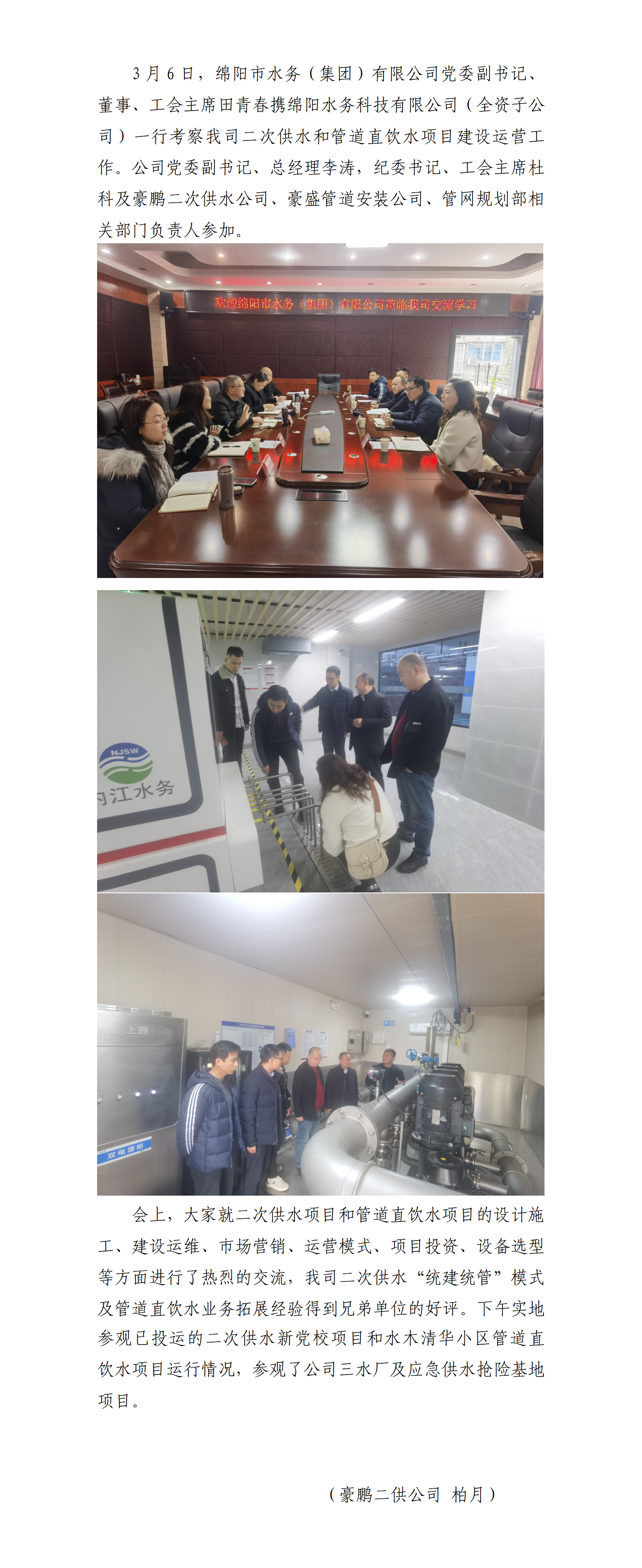 绵阳市水务(集团)公司考察我司二次供水和管道直饮水运营工作