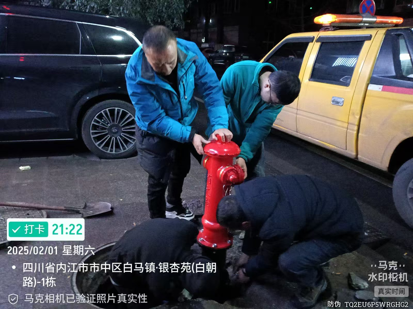 2月1日19时,一个抢修电话打破了部门值班室的宁静:“你好,请问是皇冠体育博彩吗?白马老政府一处消火栓被车辆撞断,大量自来水喷涌而出!”接到任务后,乡镇供水部迅速启动应急预案,抢修队伍第一时间赶赴现场。