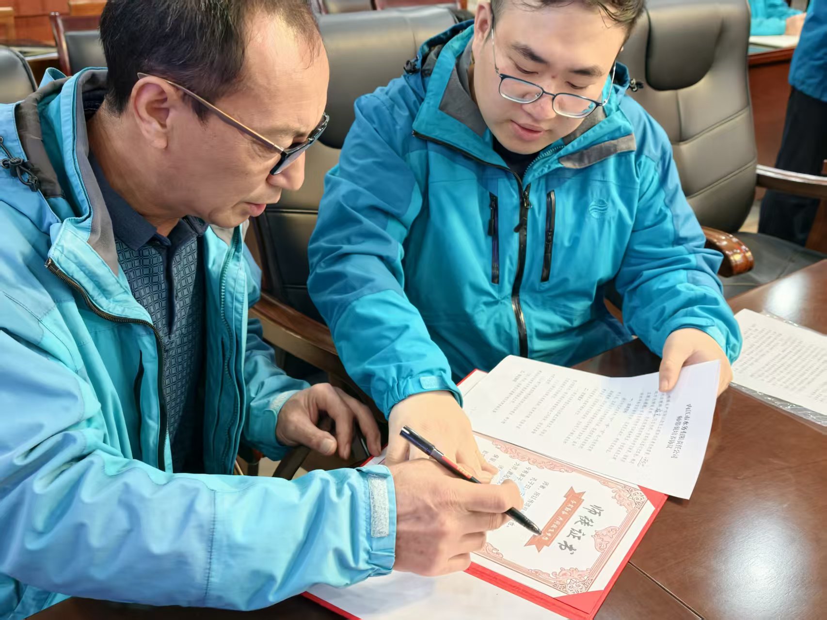 仪式现场,结对师徒分组就座,敬茶、签订师徒证书和《师带徒培养协议》等环节逐项推进。徒弟们躬身行礼、双手奉茶,师父们接过茶杯,亲手将师徒证书和《师带徒培养协议》交到徒弟手中,也将沉甸甸的传承责任交到了青年一代手上。所有结对师徒现场签订协议,明确培养周期、成长目标与双方权责,在公司领导的见证下留下了极具纪念意义的时刻。