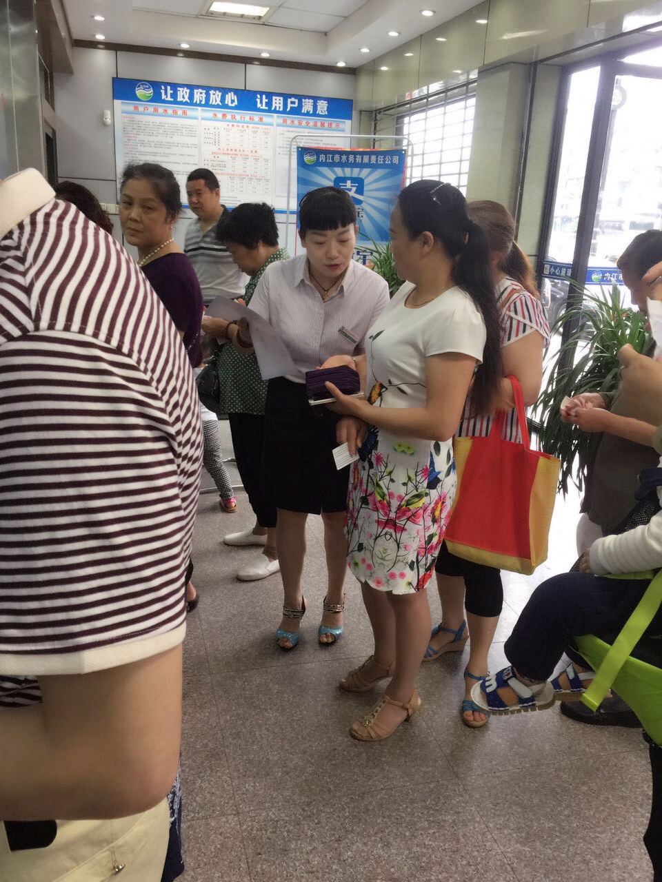 为宣传推广公司代收水费业务,公司客户服务部组织账务组的工作人员在收费高峰期到每个收费室进行代收费业务的宣传。工作人员手拿宣传单走进缴费人群中,热情仔细给用户讲解水费代收费业务,并用手机手把手教用户怎么使用翼支付和支付宝手机缴费。通过帮助用户学习掌握手机缴费,免去用户在酷暑和寒冬排队缴费的烦劳。