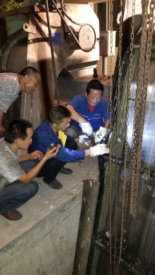 为保证国庆、中秋节日期间污水厂的正常运行,9月21日,污水厂组织人员对厂内设备及进水泵坑进行维护清理。