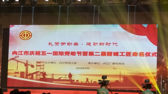 2018年4月26日下午,由市总工会举办的“礼赞劳动美·建功新时代”内江市庆祝五一国际劳动节暨第二届“甜城工匠”命名仪式在锦江国际酒店隆重举行,市委、市政府主要领导参加了本次活动。